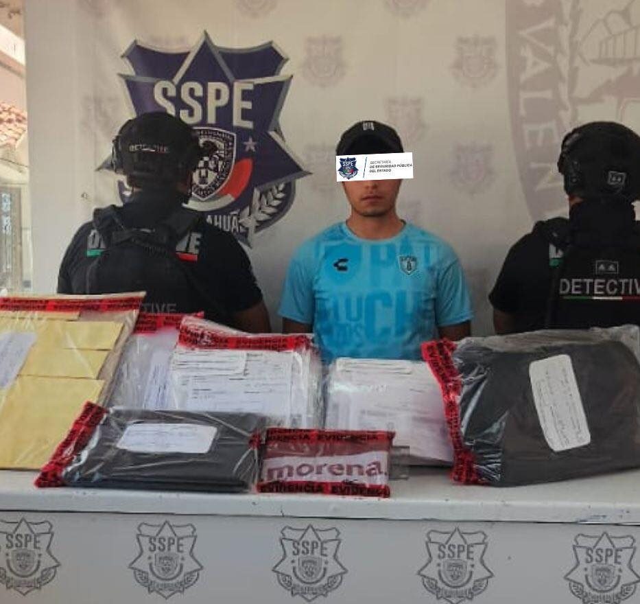 Elementos de la Secretaría de Seguridad Pública del Estado (SSPE) adscritos al Grupo Especial de Detectives detuvieron a Eric Iván E. P. de 19 años, por presuntos delitos electorales en Ciudad Juárez.