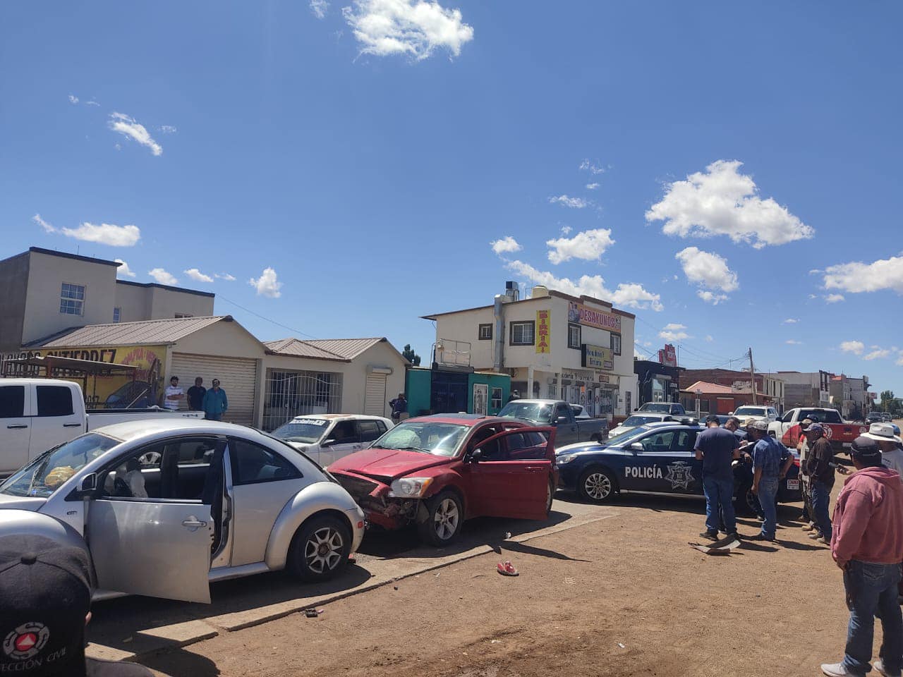 Cuauhtémoc, Chih.-La Coordinación Municipal de Protección Civil atendió un reporte de choque múltiple en la intersección de las calles Tenochtitlán y 60, recibido a las 11:03 horas en la Plataforma Centinela, acudiendo para brindar ayuda.