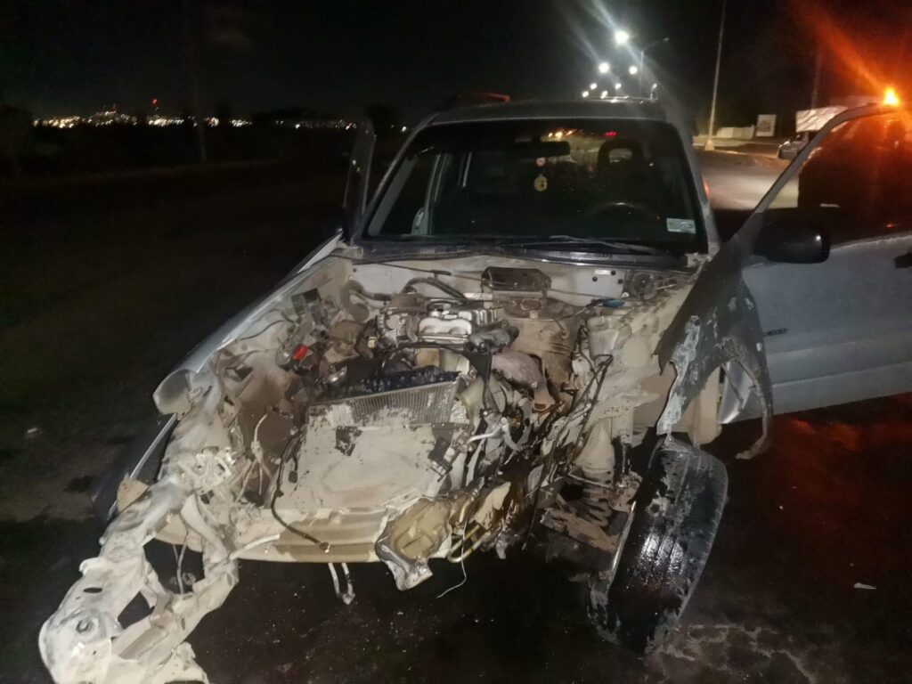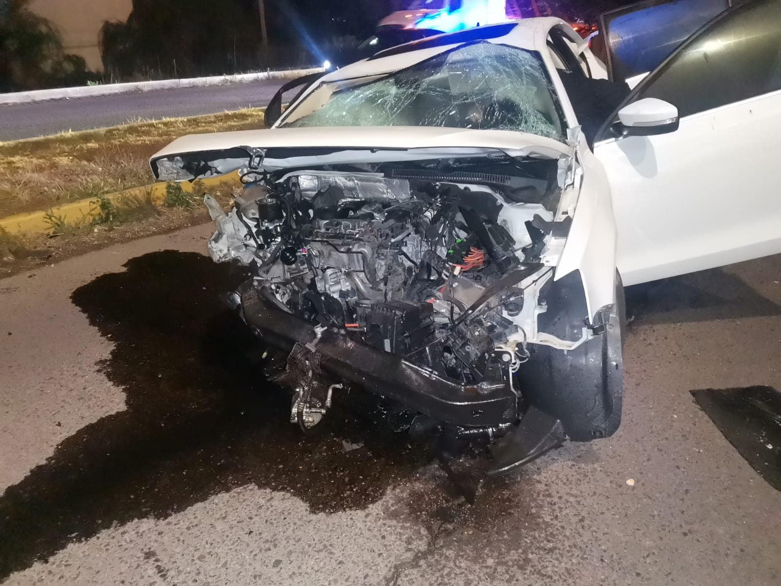 Participó además un sedán Volskwagen, Jetta, color blanco, modelo 2014, sin placas, guiado por un ciudadano de 19 años de edad. Daños por 100 mil pesos.