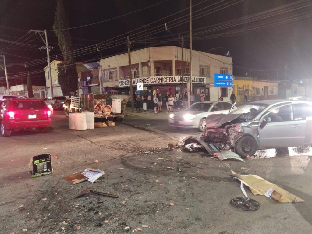 Circulaba el vehículo Nissan sobre la calle 18 en sentido de Norte a Sur, al llegar al cruce con la calle Allende, omitió su alto reglamentario por lo cual fue impactado en su parte posterior en el remolque que arrastraba por el Aveo que transitaba sobre la calle Allende, en sentido de Oeste a Este sobre su via libre.