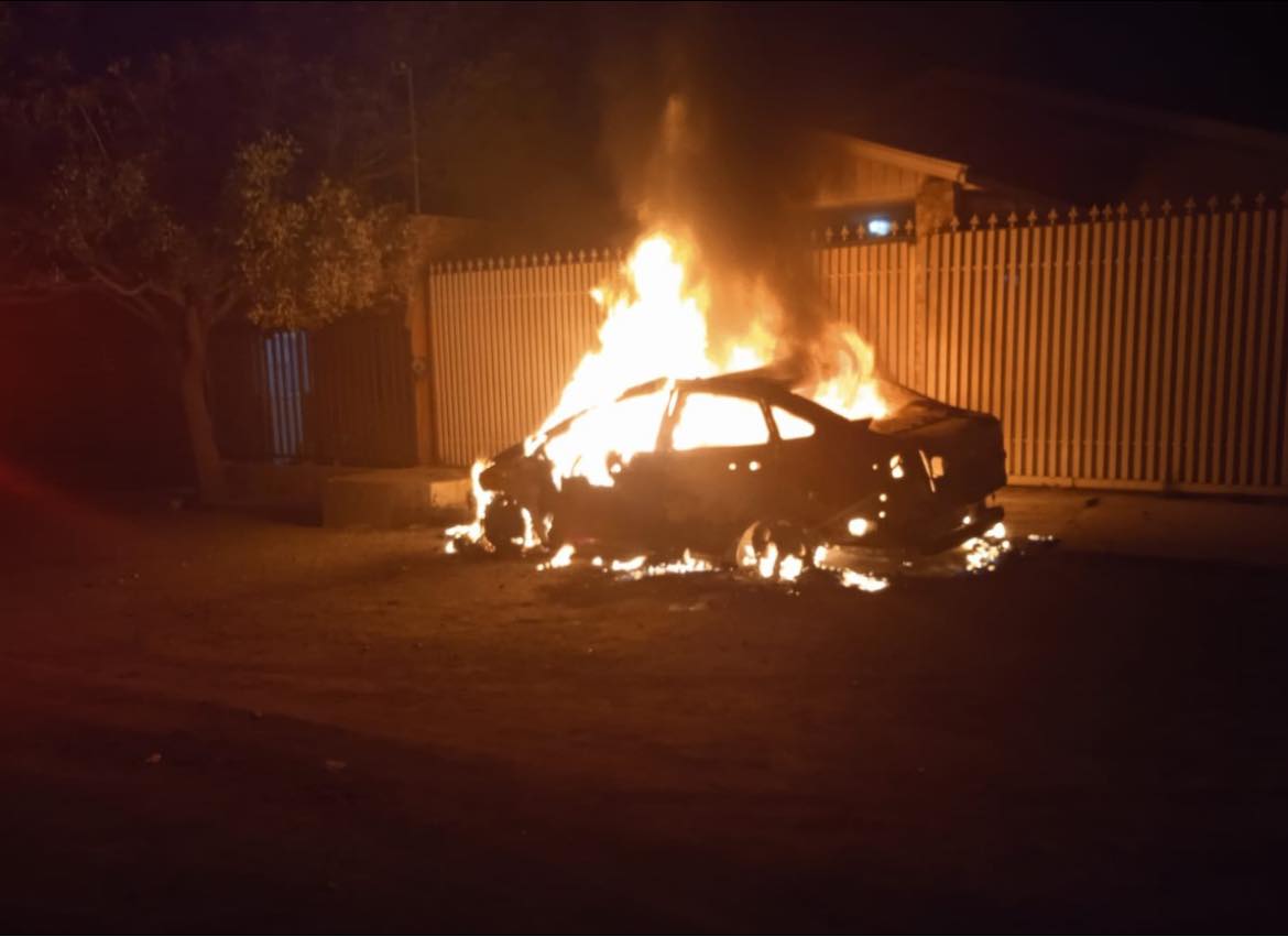 Cuauhtémoc, Chih.- Una mujer pidió el auxilio de la policía municipal pues su auto, un Ford Fiesta, en dolor guinda, modelo 2016, se quemó, resultando en una pérdida total.
