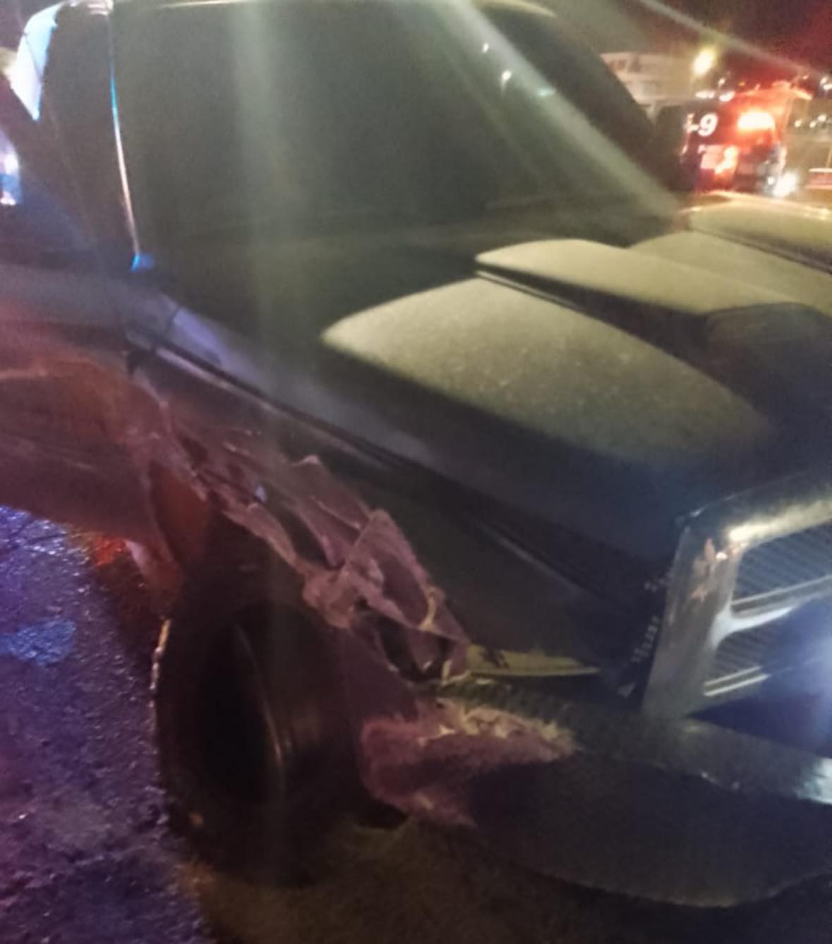 Era una pickup Dodge Ram y sin matrícula de circulación. El conductor al ver a la autoridad, trató de huir en el vehículo, pero debido a los daños que presentaba le fue imposible.