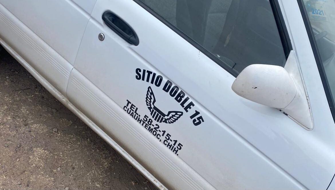 Los oficiales detuvieron al conductor de un vehículo tipo sedán, marca Nissan, línea Tsuru, modelo 2017, de color blanco, con razón social sitio Doble 15, N° económico 105, placas para circular 11-83-BWD del estado de Chihuahua.
