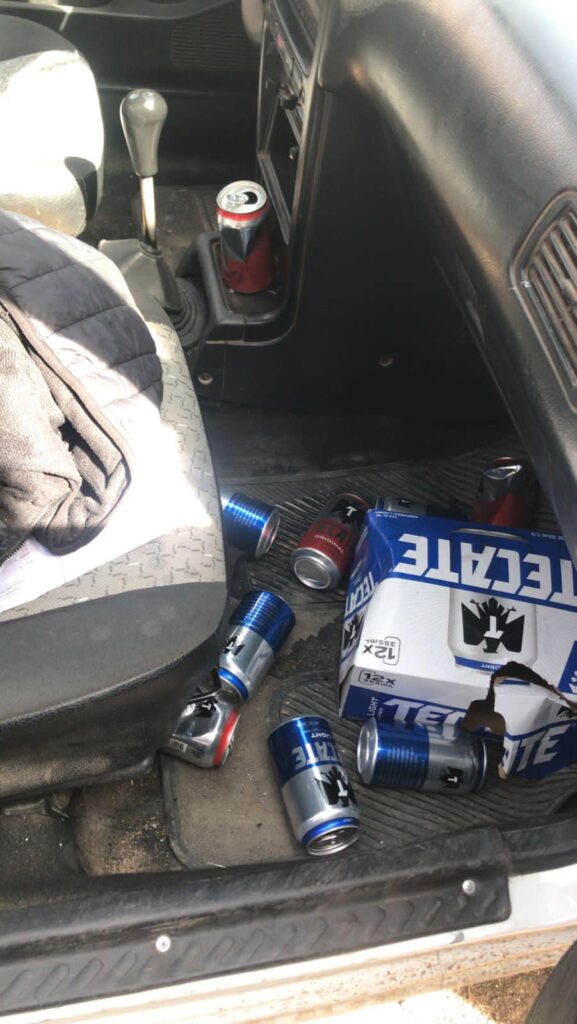 Al detenerlo, se percatan que el conductor estaba ebrio, así como también encontraron envases de embriagantes en el interior del automóvil.