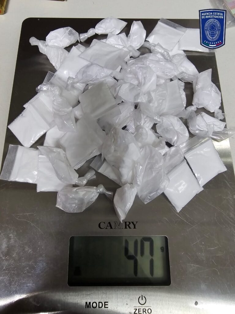 Elementos de la Agencia Estatal de Investigación, detuvieron a un masculino por posesión de cocaína, durante el cateo a la vivienda marcada con el número 5827 de la calle Águilas, entre 58 y 60 de la colonia Miguel Sigala, en la ciudad de Cuauhtémoc.