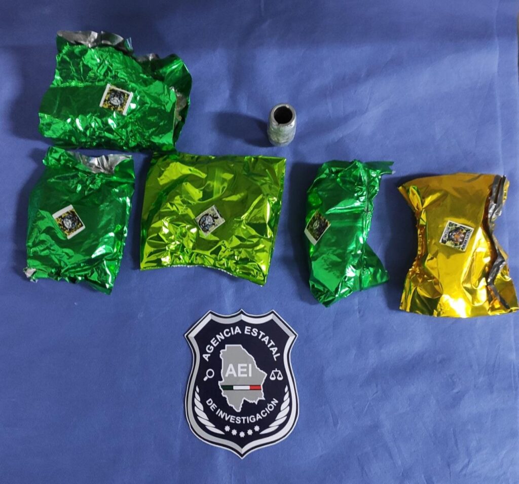 Raul Eruvey P. O., de 19 años de edad traía entre sus ropas cinco envoltorios de papel tipo celofán, con una estampa de un tigre los cuales contenían una hierba verde, seca y olorosa con las características propias de la mariguana que dieron un peso de 150 gramos.
