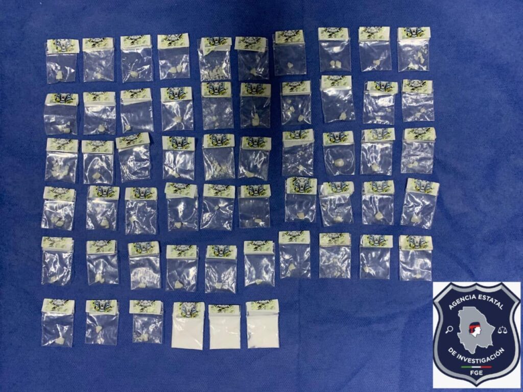En la inspección al vehículo que tripulaban se localizaron 53 envoltorios con un estampado de un tigre, los cuales contenían una sustancia granulosa con las características de la droga conocida como cocaína en piedra.