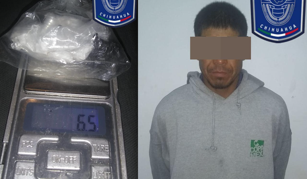Cuauhtémoc, Chih.-La Fiscalía General del Estado a través de elementos de la Agencia Estatal de Investigación del destacamento de Cuauhtémoc, detuvieron en la calle Periférico y Tomóchi, a quien se identificó como Ernesto G. C., por posesión de droga conocida como cristal.
