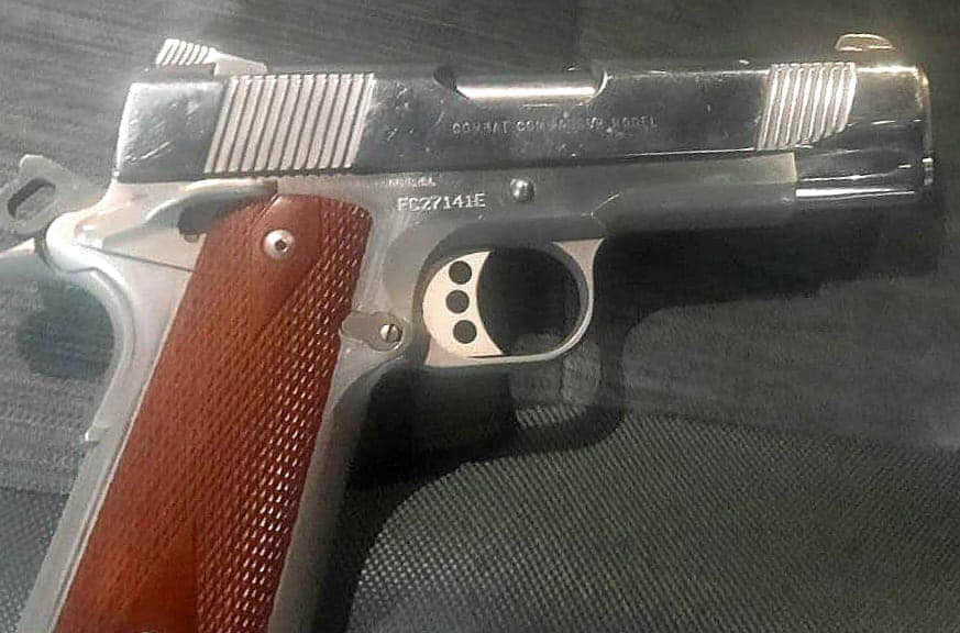 El sujeto, identificado como Alfonso L. M. de 49 años de edad, traía consigo un arma de fuego Colt calibre .45 con un cargador abastecido con 6 cartuchos útiles del mismo calibre.