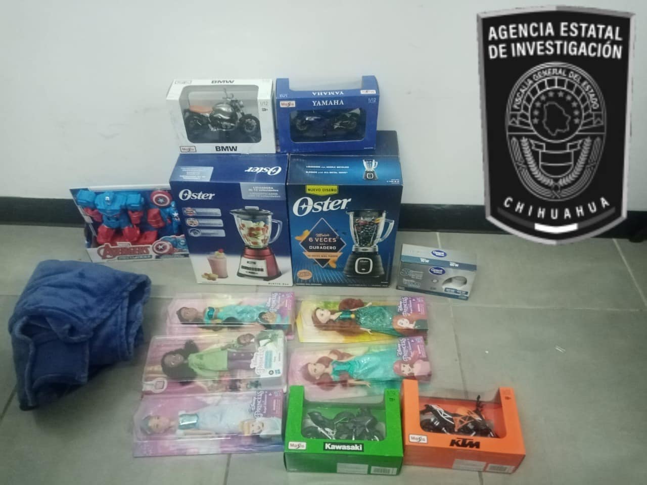Motivo por el cual detuvieron a Claudia G. V., de 31 años de edad, quien llevaba consigo dos licuadoras, un paquete de 24 botellas de agua y juguetería diversa, quien junto con los objetos asegurados fue puesta a disposición del Ministerio Público por el delito de robo.
