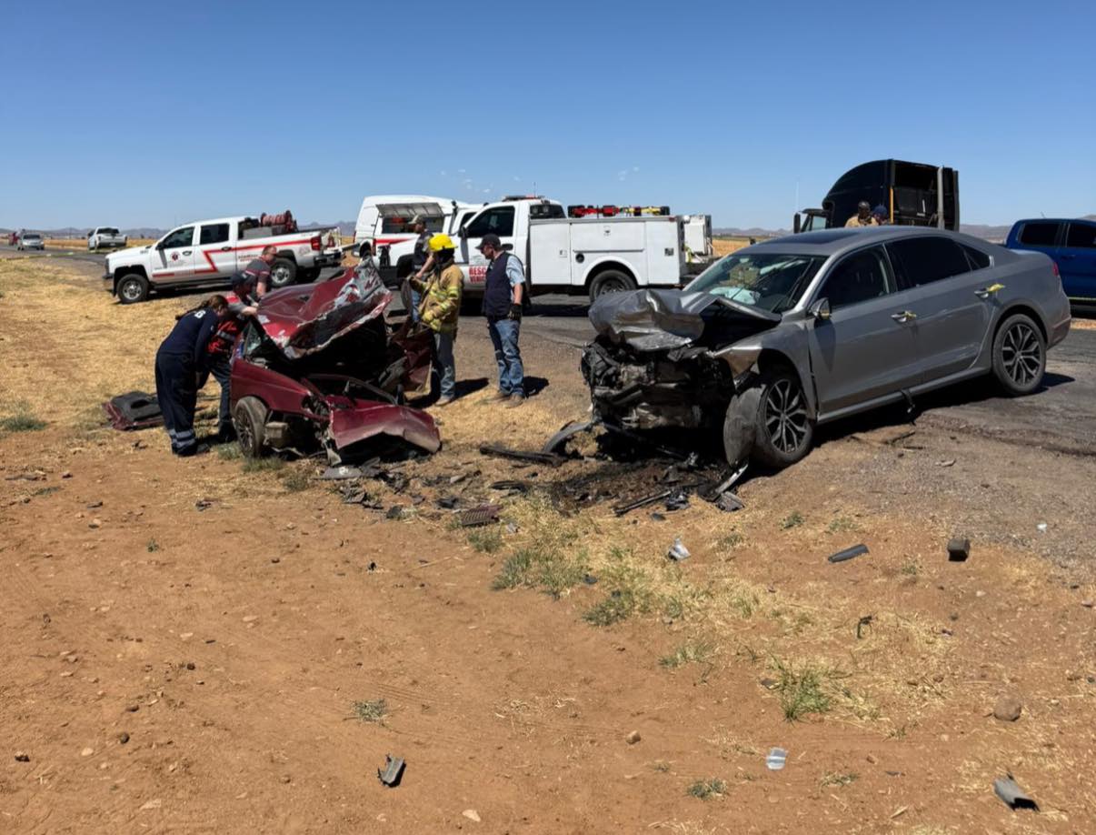 Cuauhtémoc, Chih.-La Policía Vial de Álvaro Obregón atendió un accidente vehicular reportado a las 14:40 horas en el kilómetro 11+700 de la carretera estatal #33 rumbo a Ojo de la Yegua, donde dos vehículos chocaron frontalmente.