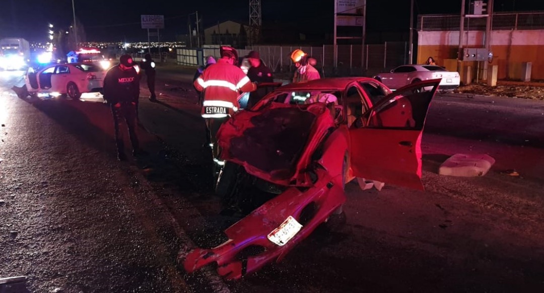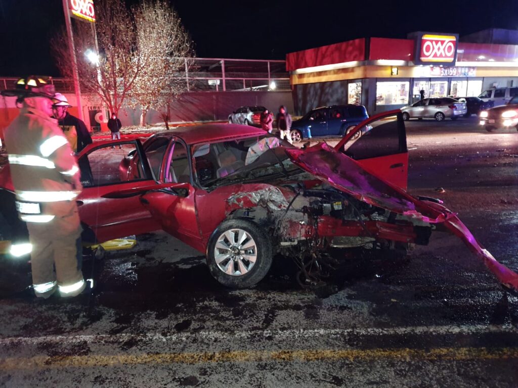Cuauhtémoc, Chih.-Dios personas lesionadas e importantes daños materiales dejó un fuerte choque registrado anoche en el entronque de la carretera a Anáhuac.