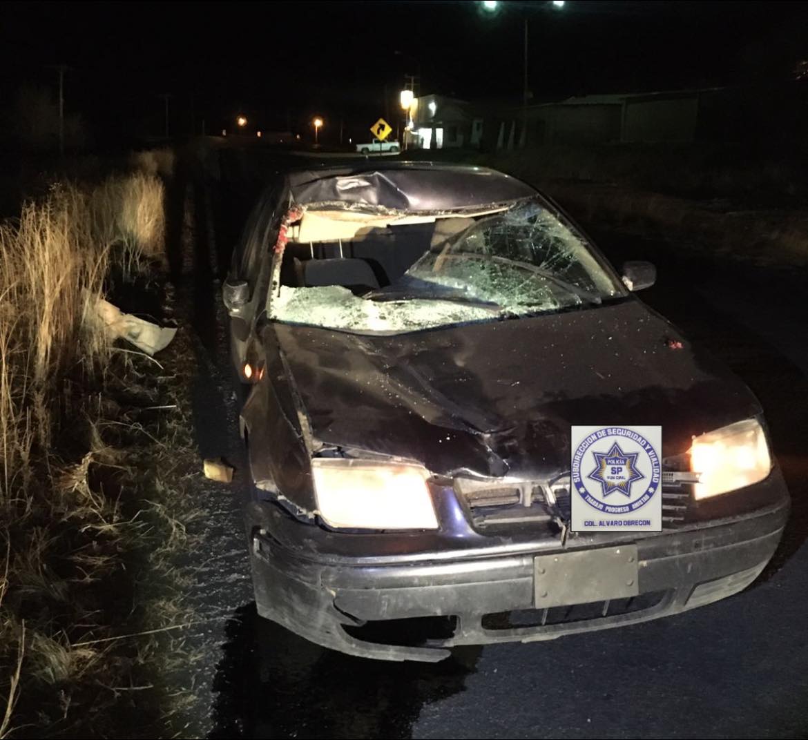 Cuauhtémoc, Chih.-Los agentes de la Policía Seccional de Álvaro Obregón a través del Mando Único atendieron un accidente a las 20:40 horas de ayer 19 de diciembre en el kilómetro 2, a la altura de la salida al Ojo de la Yegua.