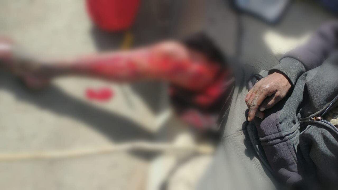 Cuando los policías llegaron al lugar encontraron a un hombre con una herida en la pierna derecha que estaba sangrando mucho, por lo que se solicitó la presencia de la Cruz Roja Mexicana y los paramédicos le brindaron los primeros auxilios para posteriormente llevarlo a un hospital de la comunidad.