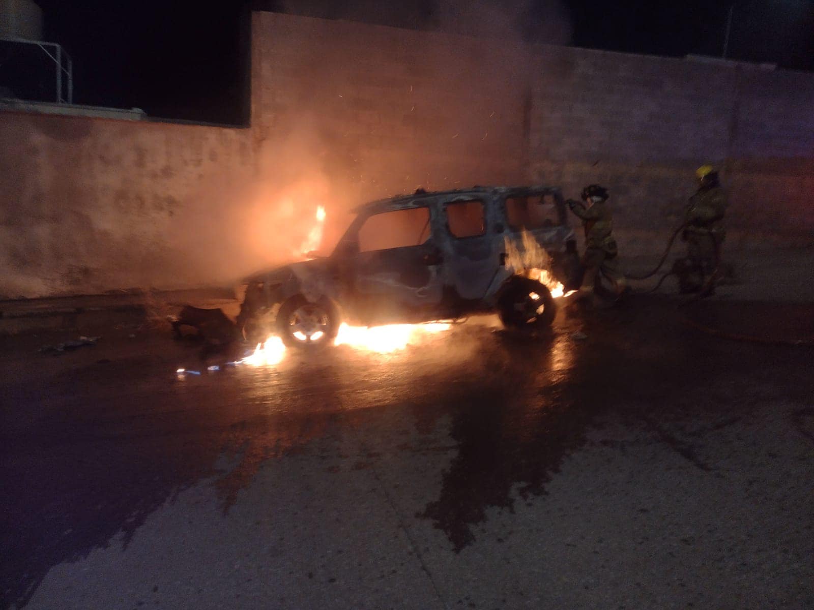 Al llegar al lugar, observaron un vehículo con las características de una Honda Element en color negro, en llamas, motivo por el cual solicitaron al personal de Bomberos que acudiera para sofocar el incendio.