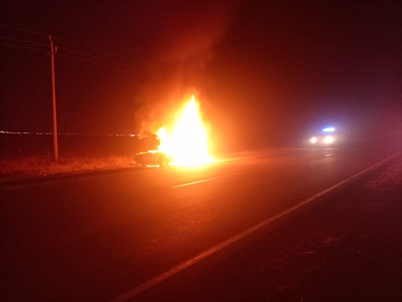 Cuauhtémoc, Chih.-La Policía Municipal a través del Mando Único, acudió al kilómetro 2 del periférico Gómez Morín, a las 22:20 horas del 08 de noviembre, ya que se reportó un vehículo incendiado.