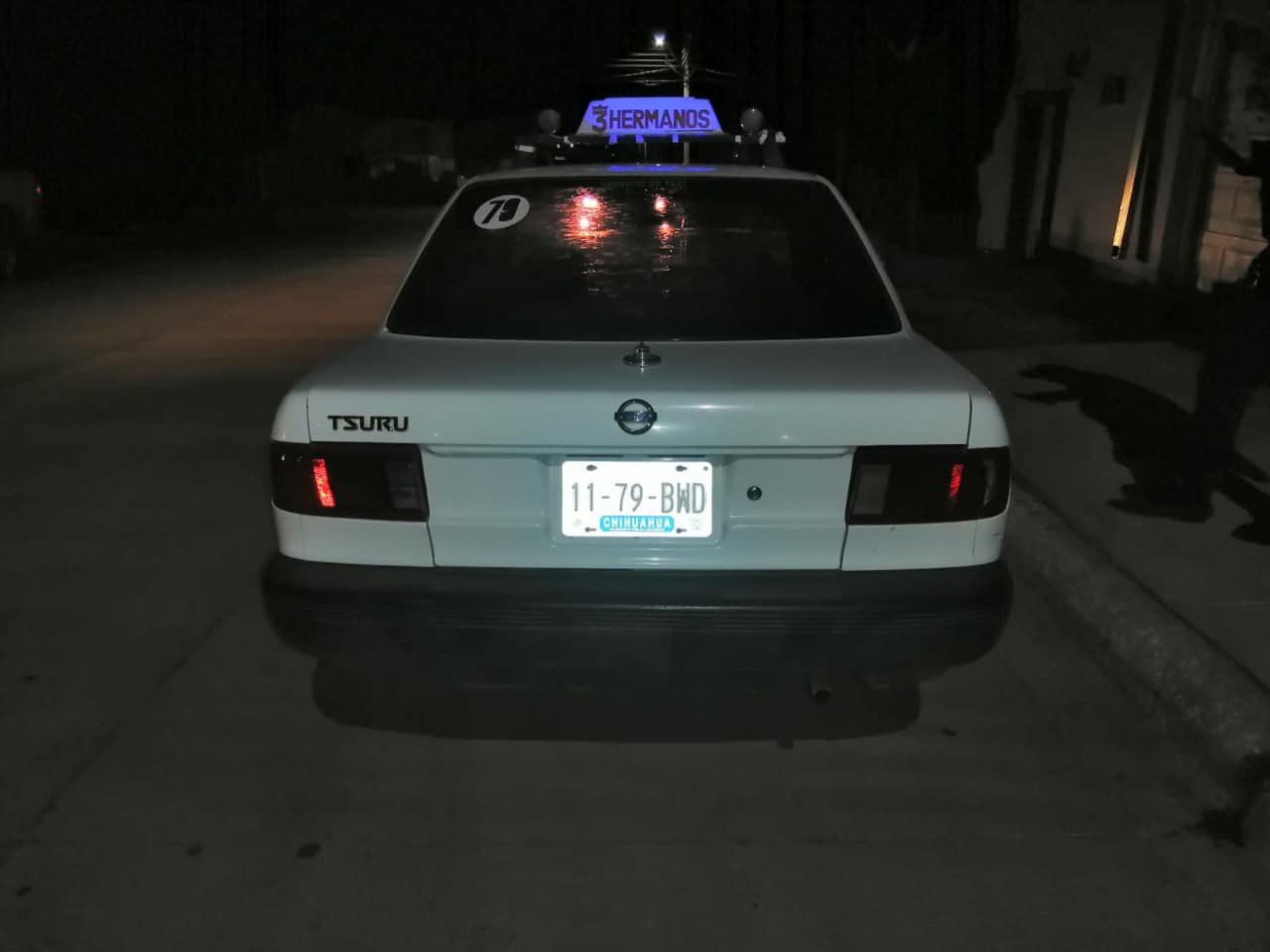 El auto, un Nissan Tsuru, blanco, número económico 79, es parte de la flotilla del sitio ubicado en la 18 y California.