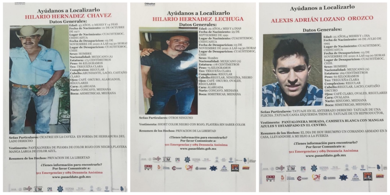 Las tres personas fueron reportadas como privadas de su libertad la madrugada del pasado martes.