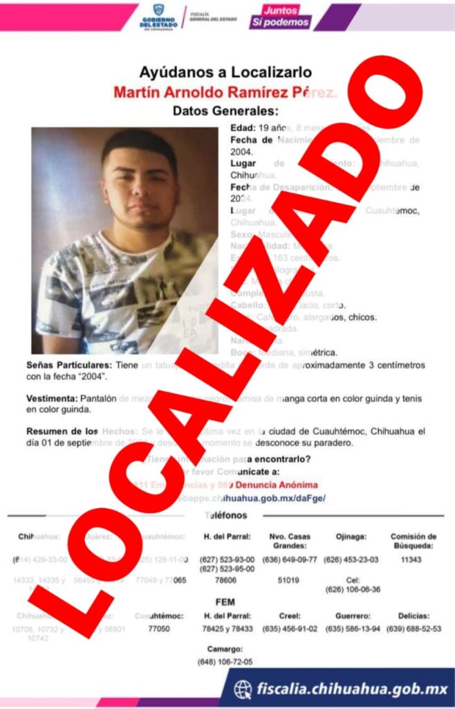 La Fiscalía de Distrito Zona Occidente localizó a salvo a dos masculinos que en diferentes casos fueron reportados como desaparecidos y por quienes se generaron carpetas de investigación y se difundieron pesquisas de búsqueda.