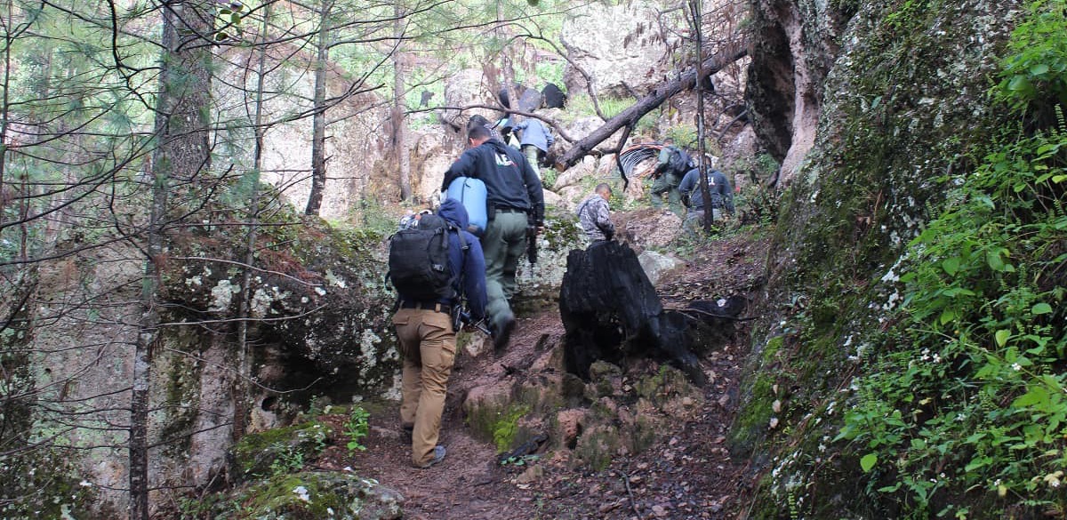 Bocoyna, Chih.-Personal de Investigación de la Fiscalía de distrito zona occidente localizó en la comunidad de Riquinapuchi, municipio de Bocoyna, restos al parecer de un ser humano.