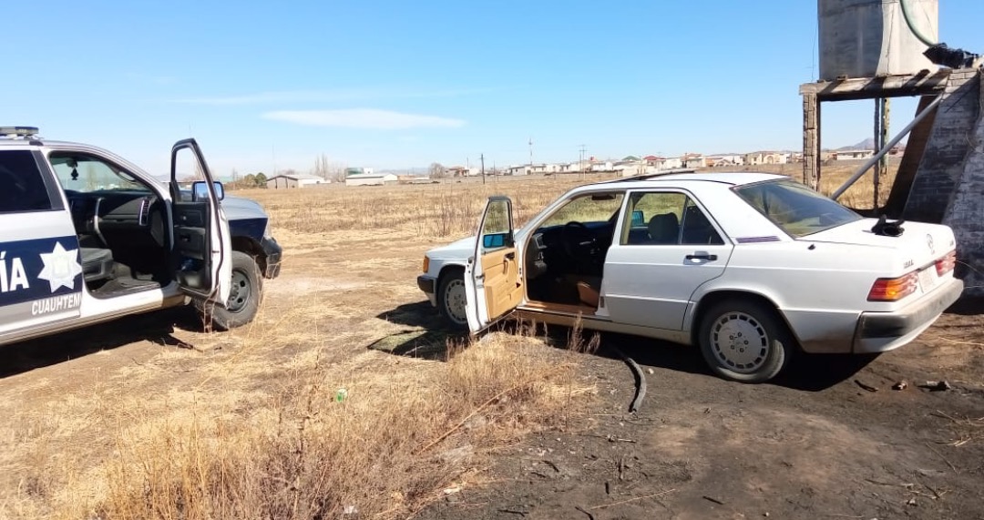 Asimismo el reportarte manifestó que no lograba localizar vía telefónica a su hijo, el cual conducía un vehículo tipo sedán, marca Mercedez, modelo 1991, color blanco, el cual fue ubicado por los agentes a las 12:40 horas en un predio cercano a las calles 94 y Presa la Amistad.