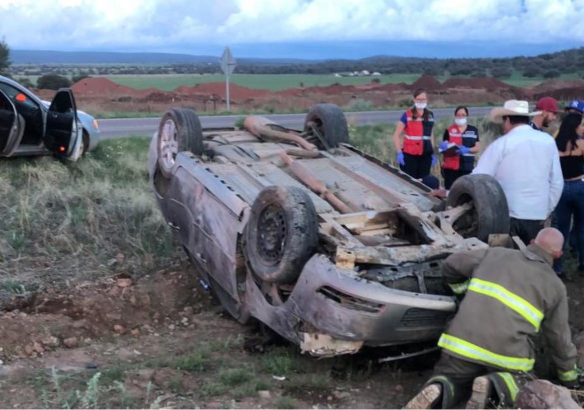 Cuauhtémoc, Chih.-Fuerte susto se llevó un menor de edad que protagonizó un acidente de tránsito tipo volcadura registrado ayer en la carretera que conduce al Seccional de Lázaro Cárdenas.