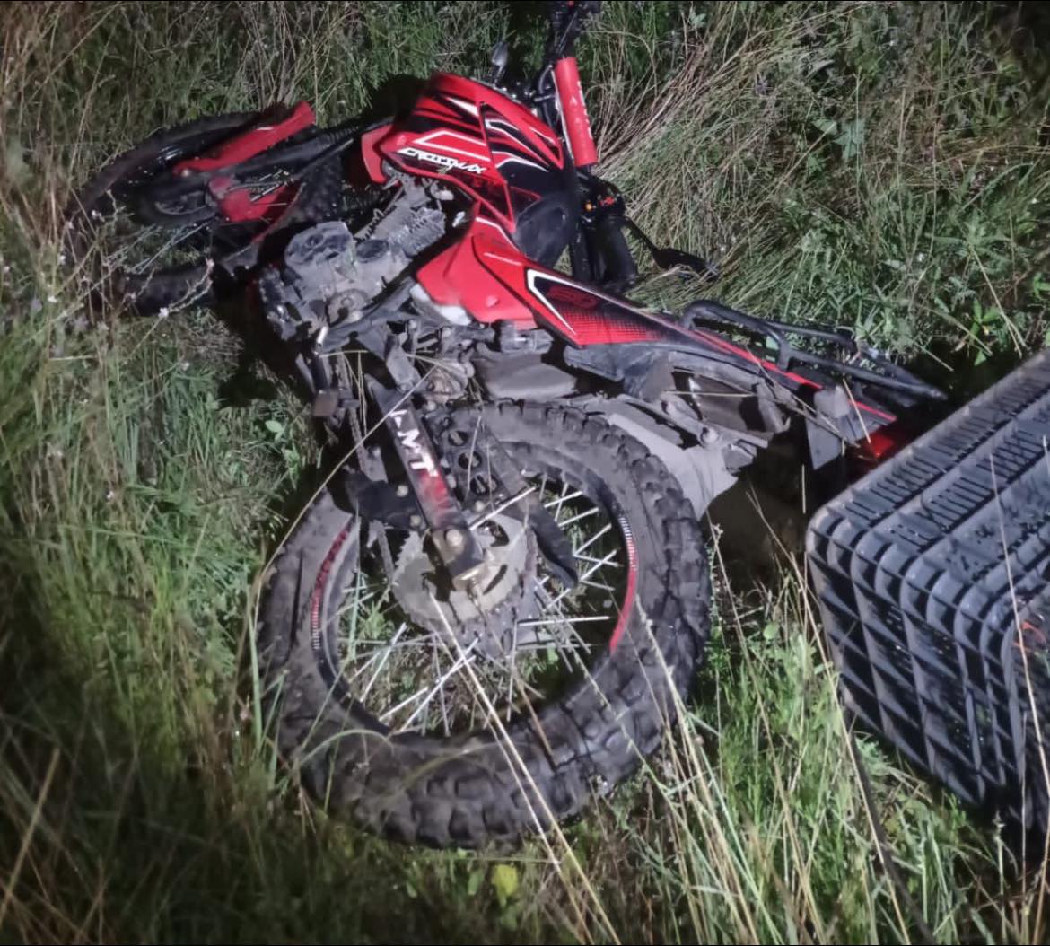 Se trata de un vehículo marca Vento, línea Crossmax, tipo motocicleta, color rojo, modelo 2022, sin placas para circular, conducido por Javier H. R. de 30 años de edad, con domicilio conocido en Ejido La Quemada, quien resultó lesionado.