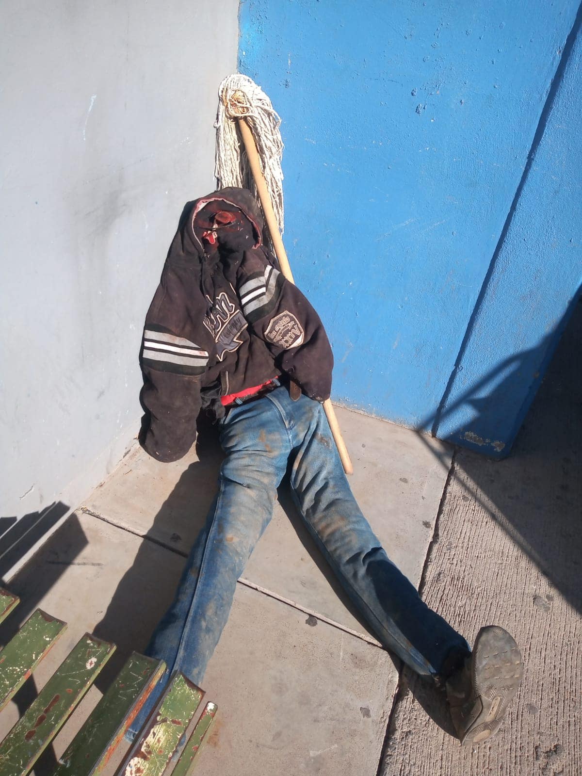 El reporte se recibió al sistema de emergencias 911, en el que afirmaban que había un deceso, al inspeccionar se encuentra un fetiche hecho con la ropa: una camisa roja, sudadera negra y pantalón de mezclilla azul, por tal motivo se levantó y se trasladó al área de prefectura.