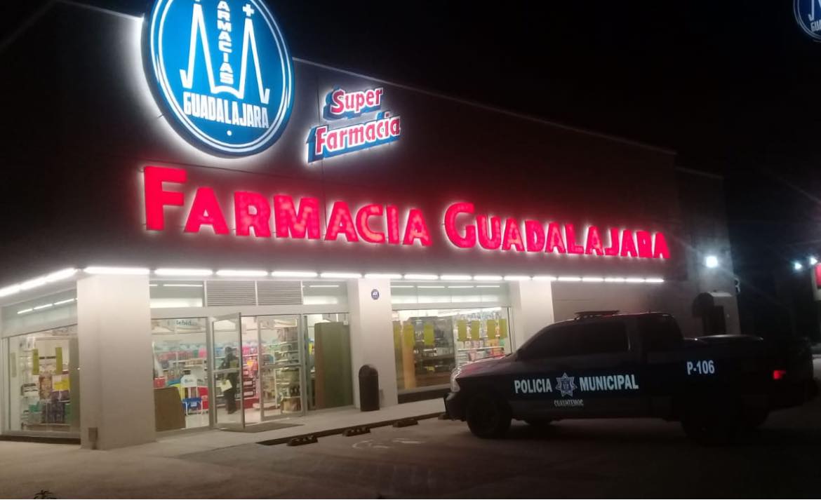 Cuauhtémoc, Chih.-Elementos de la Policía Municipal atendieron un reporte de robo con violencia que fue notificado a la línea de emergencias 911, a las 04:30 horas de la madrugada de ayer domingo 06 de junio, desde un establecimiento comercial con razón social “Farmacias Guadalajara” ubicado en el bulevar Fernando Baeza y calle 38 del Barrio Lerdo.