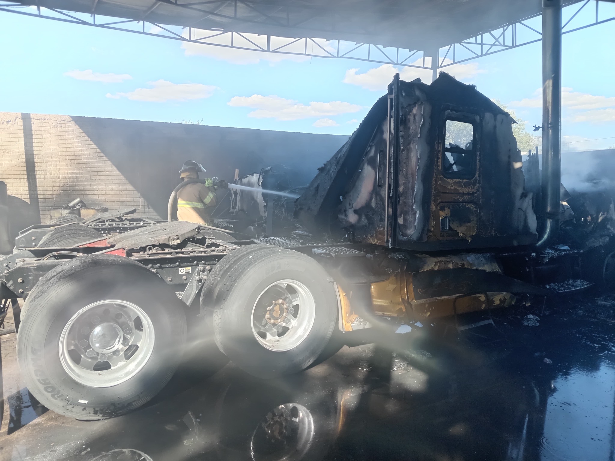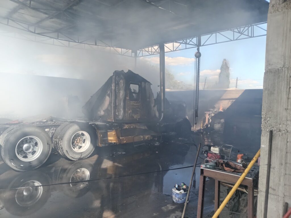 El fuego se registró en dos camiones de la marca Kenworth, uno era de color rosa y el otro amarillo, modelos 2012 y 2011 respectivamente, así como herramientas variadas.