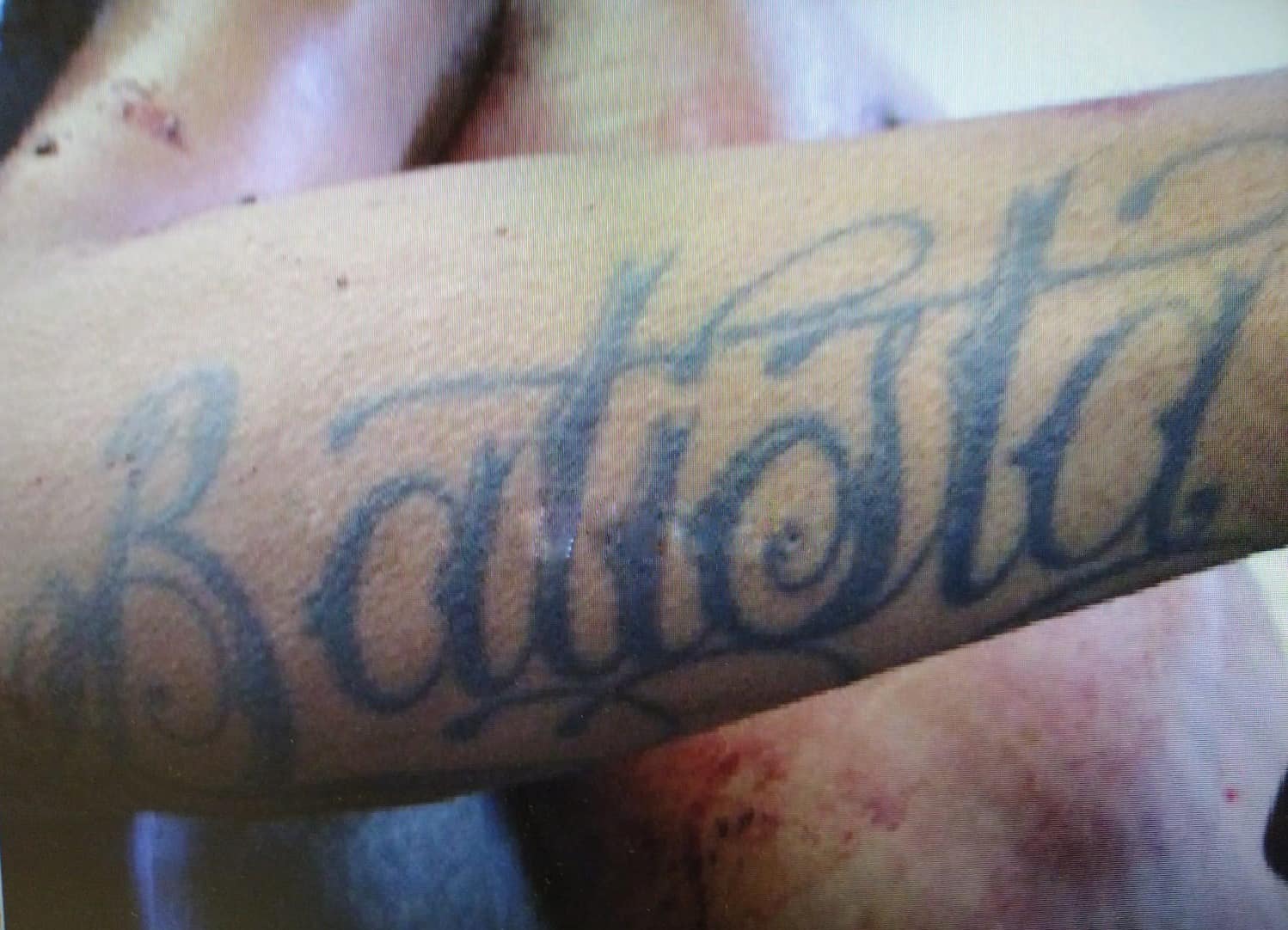 Tiene un tatuaje de una mujer en la espalda, otro en antebrazo derecho que dice Batista y otro en antebrazo izquierdo de un San Judas Tadeo, entre otros.