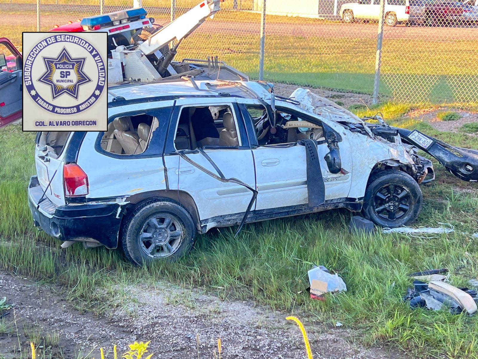 El reporte se recibió a las 07:00 horas. Al arribar, los oficiales observaron un vehículo siniestrado tipo SUV GMC Envoy modelo 2004, color blanco, placas DZR962B, que había salido de la carretera y terminado sobre su toldo, tras proyectarse hacia un canal de riego luego de perder el control del volante.