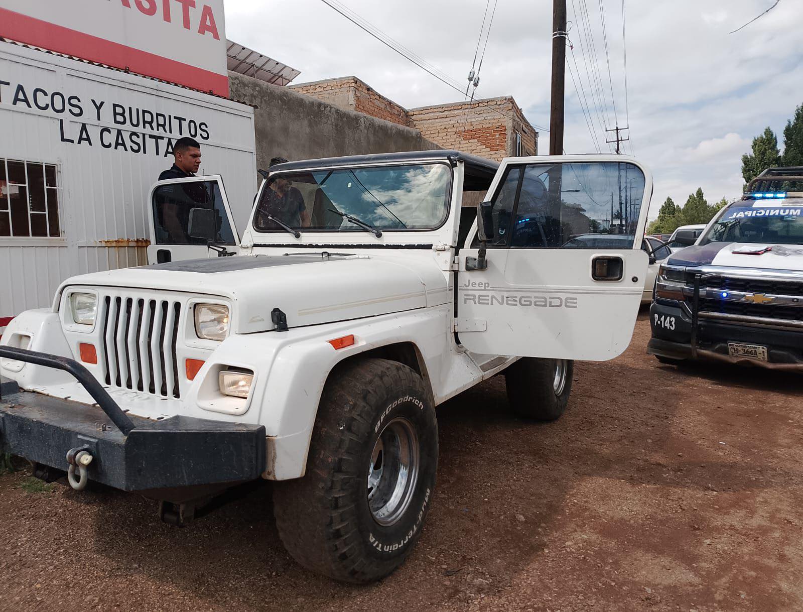 Los hechos ocurrieron alrededor de las 10:10 horas, cuando se recibió información vía radio operador sobre la posible localización de una camioneta tipo SUV Jeep Wrangler, color blanco, modelo aproximado 1991, con techo negro y estampado “Jeep Renegade”, características que coinciden con las de un vehículo robado horas antes en la Zona Centro.