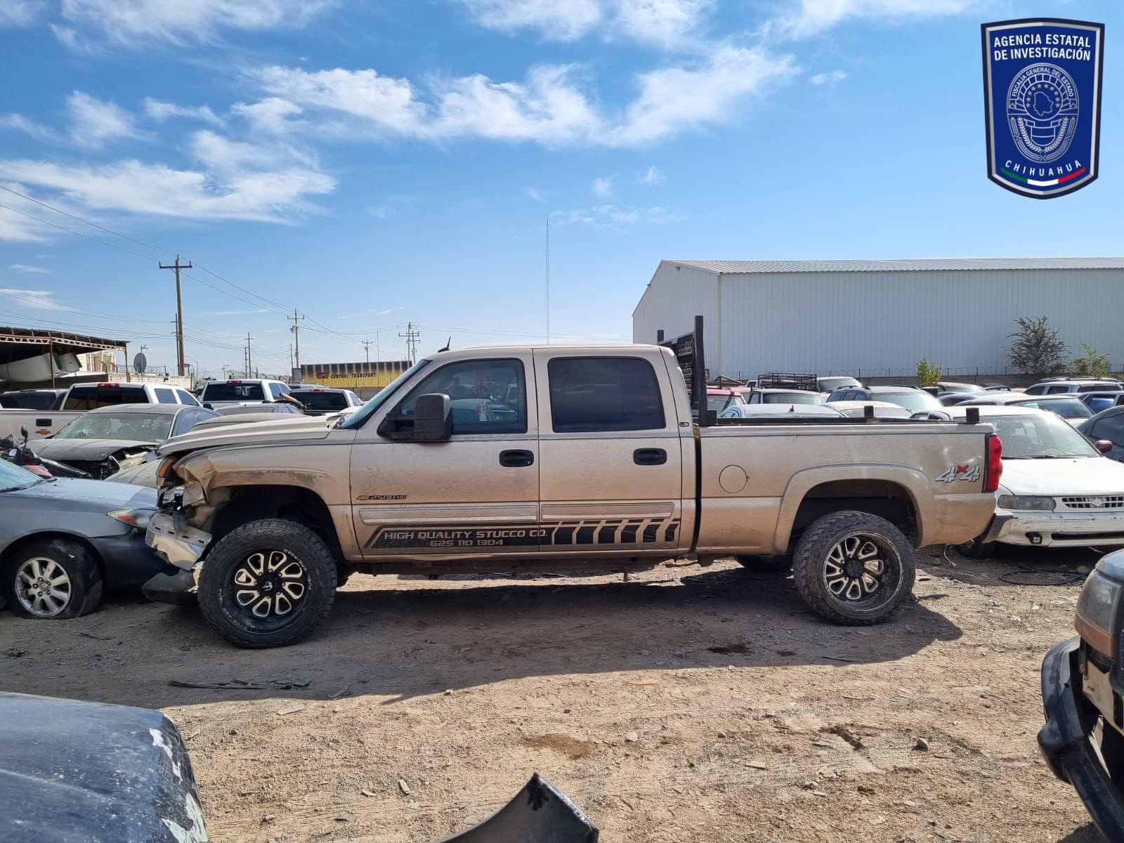 Cuauhtémoc, Chih.-Elementos de la Agencia Estatal de Investigación, adscritos a la Fiscalía de Distrito Zona Occidente, aseguraron un vehículo tipo pick up, Chevrolet, Silverado, modelo 2005, color arena el cual resultó con reporte de robo.