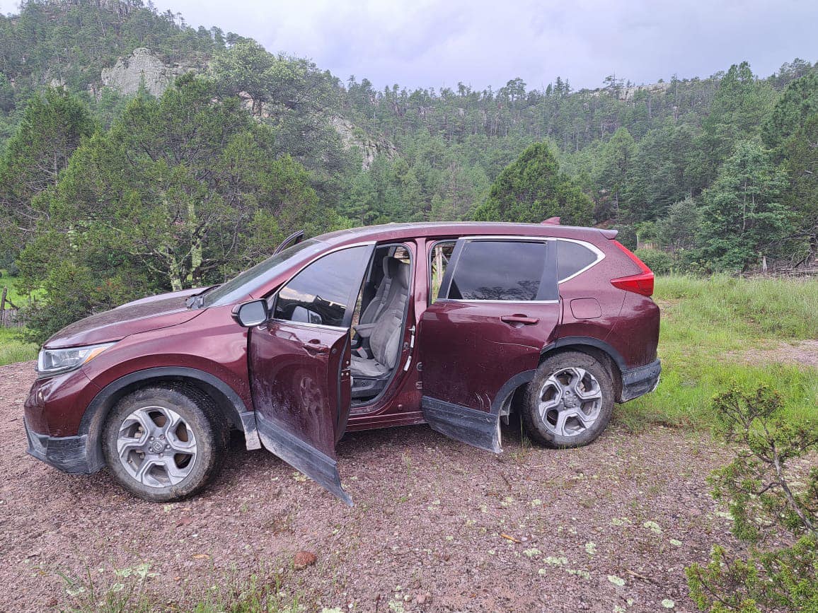 El vehículo asegurado es una camioneta Honda CR-V de color guinda, sin matrículas, cuyo número de serie muestra reporte de robo del pasado mes de mayo del 2019 en Tucson, Arizona.