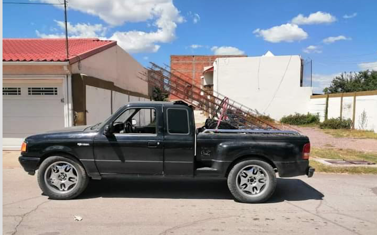 Se trata de una Ford Ranger, modelo 1994, cabina y media, caja Californiana, nacional, sin matrícula de circulación, color negro y como seña particular cuenta con rines de lujo de 20 pulgadas y un logotipo con la leyenda “Load Trail” que se encuentra en la tapa de la caja, con una medida aproximadamente de 40 x10 centímetros.