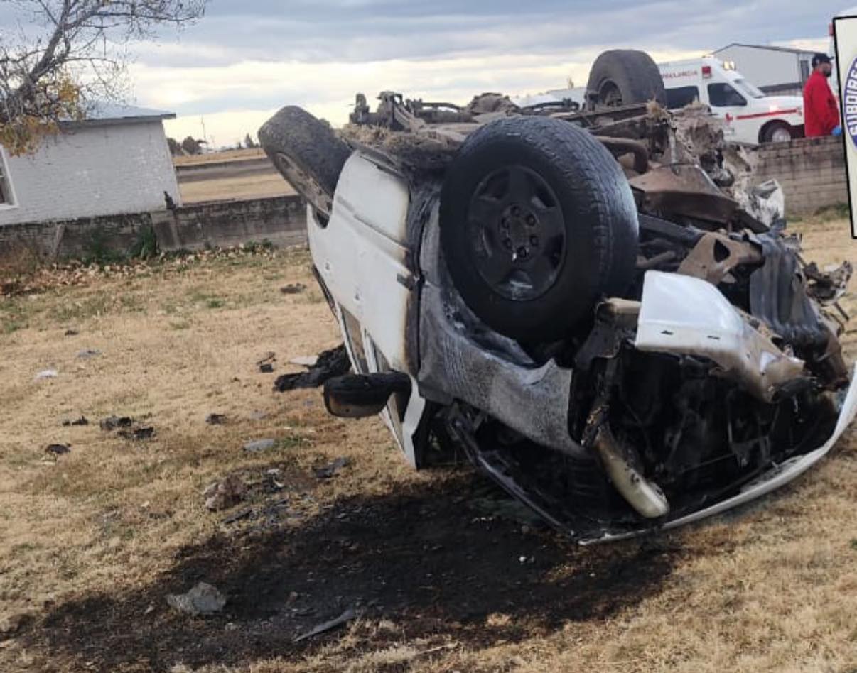 En el lugar se encontró una camioneta volcada y semicalcinada. Un testigo informó que el vehículo circulaba de norte a sur a velocidad no determinada cuando salió del camino, impactó un puente de canal que funciona también como acceso a un domicilio y posteriormente dio aproximadamente cuatro volteretas, quedando finalmente sobre su toldo. Los daños materiales fueron estimados en 30 mil pesos.