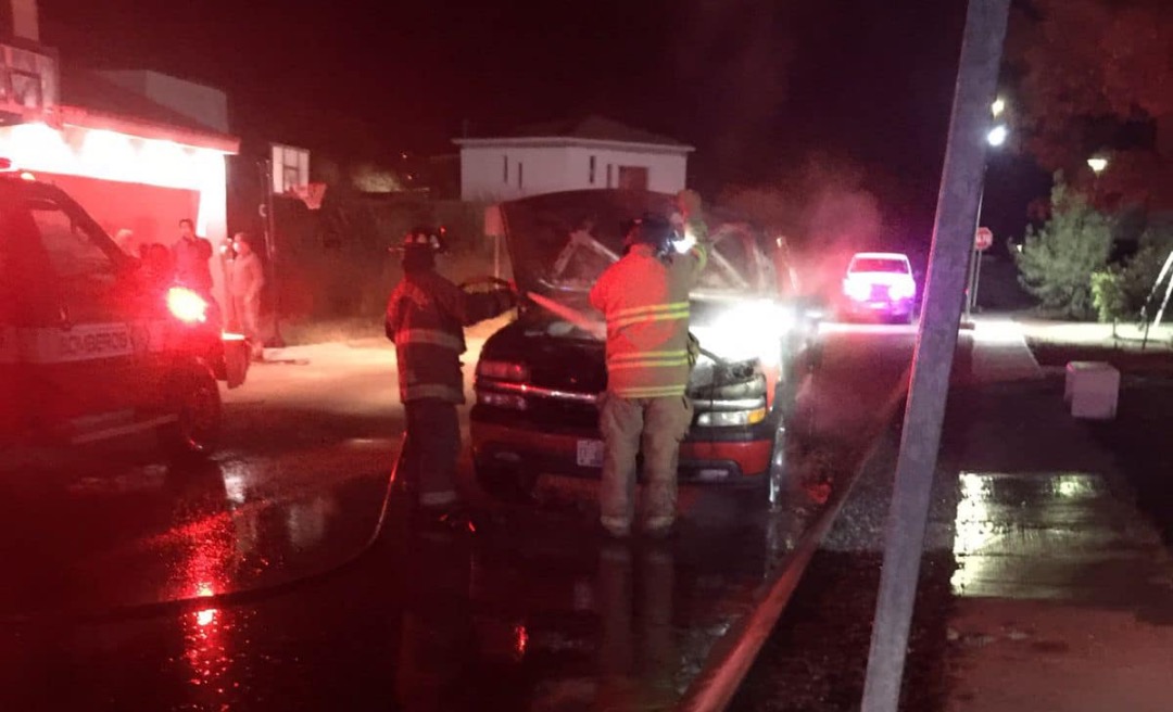 Cuauhtémoc, Chih.-Policías municipales atendieron el reporte de incendio de vehículo a las 23:11 horas de ayer lunes 25 de octubre, en las calles Ermita San Paolo y Río Florido.