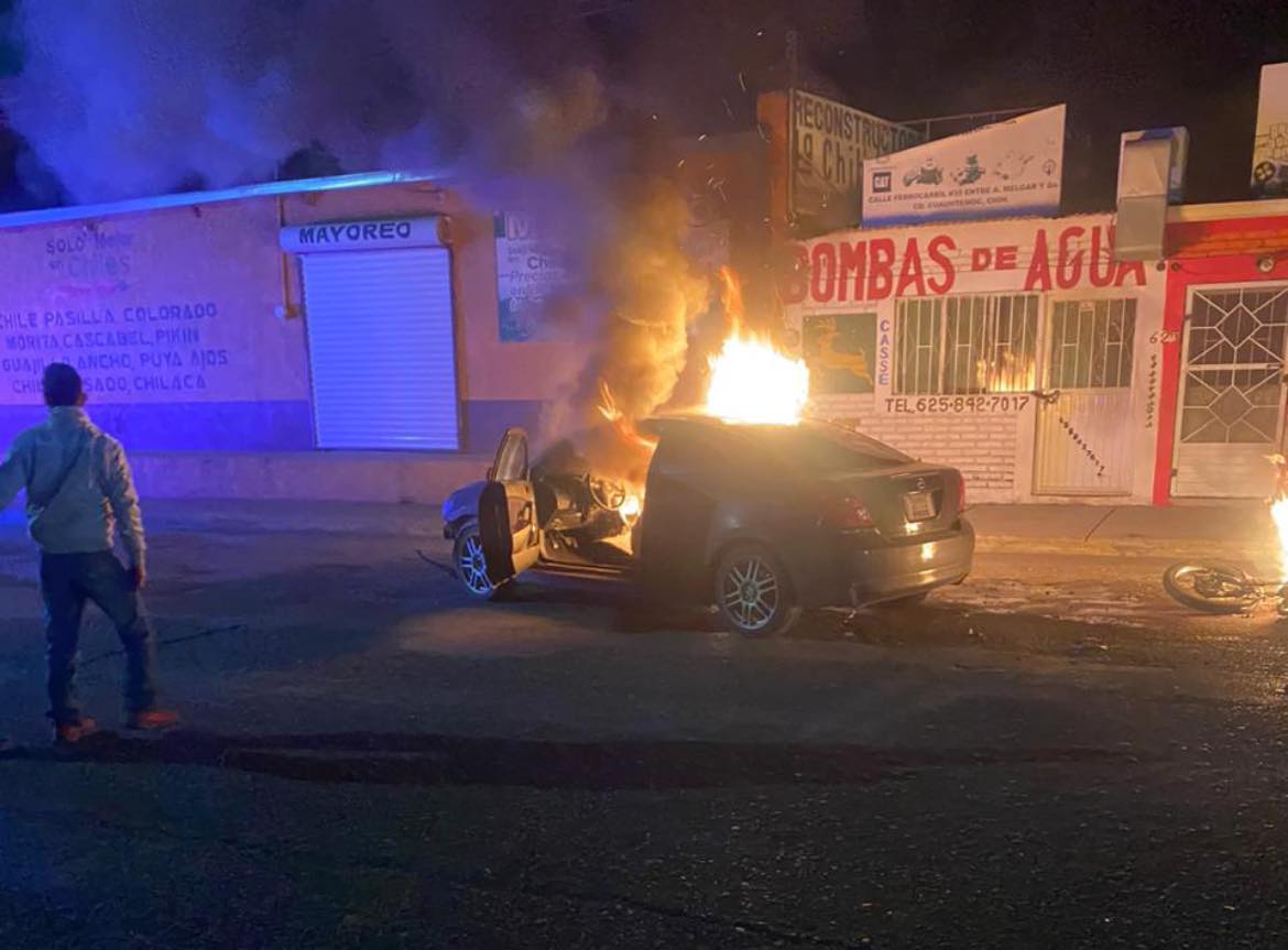 Cuauhtémoc, Chih.-Los agentes de la Policía Vial a través del Mando Único, acudieron a las calles Ferrocarril y Segunda, a las 21:19 horas de ayer 26 de marzo, ya que se registró un choque en el cual ambos vehículos involucrados se incendiaron tras el impacto.