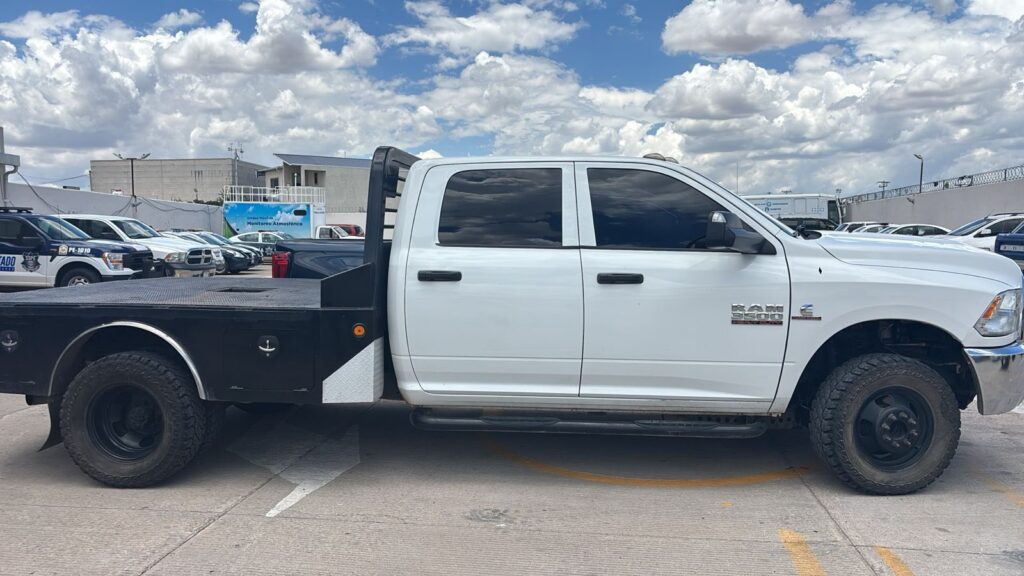 Los hechos ocurrieron a las 11:38 horas, cuando elementos atendieron un reporte en el que se informaba sobre el robo de una camioneta tipo pick up, marca RAM 3500, modelo 2014, color blanco, la cual fue sustraída del establecimiento “Llantera y Servicios Wall”, ubicado en el kilómetro 8+500 de la carretera estatal número 5.