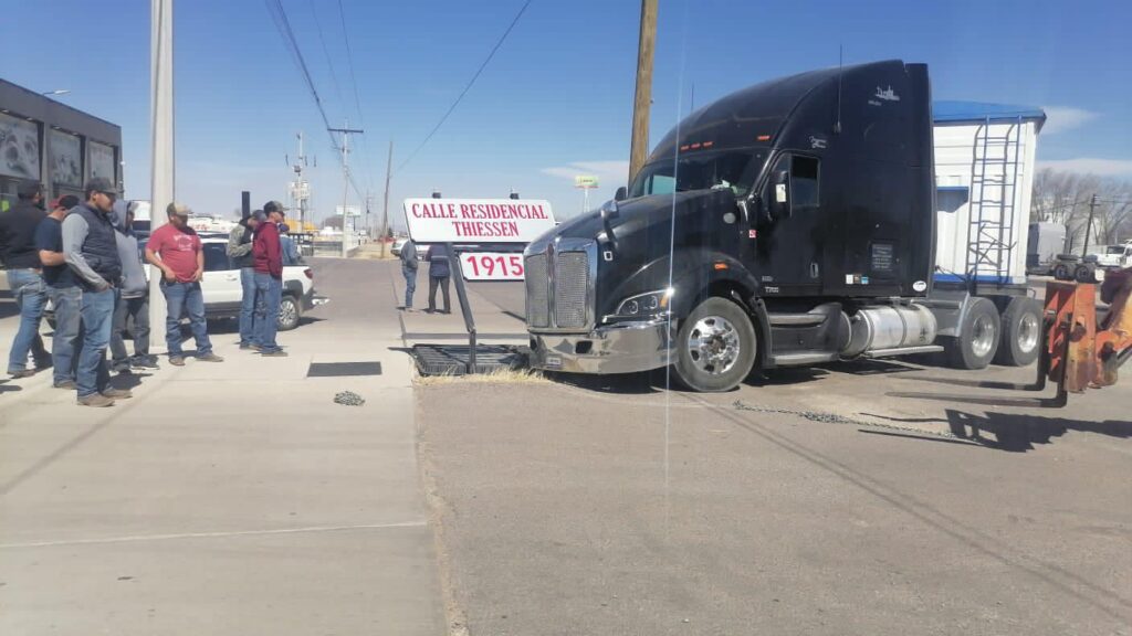 Circulaba el tractocamión Kenworth sobre el Corredor Comercial, en sentido de norte a sur, a una velocidad no precisada, cuando al llegar a la altura de la calle Residencial Thiessen, chocó la parte trasera de la Silverado, que a su vez remolcaba una traila, provocando que el automotor perdiera su verticalidad, terminando sobre su costado derecho, mientras que el tractocamión siguió su marcha para impactar al tractor y seguir hasta terminar contra el letrero de la calle.