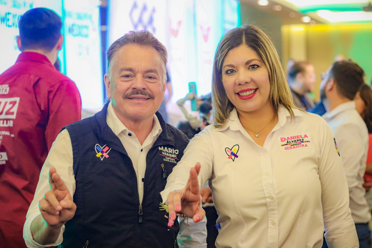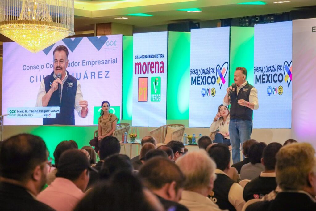 Los candidatos al Senado Mario Vázquez y Daniela Álvarez por la Coalición “Fuerza y Corazón X México” (PAN, PRI, PRD), participaron en el Encuentro Empresarial con Candidatos que organizó el Consejo Coordinador Empresarial de Ciudad Juárez.