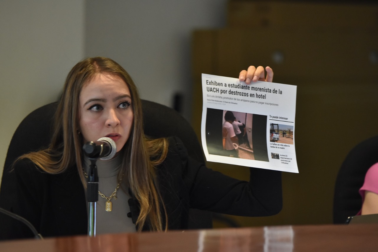 Destacó que existen evidencias que vinculan a activistas de Morena con actos de violencia y manipulación de estudiantes. Mencionó específicamente a candidatos y miembros de Morena que han sido señalados por fomentar disturbios y utilizar a los jóvenes para sus objetivos políticos. “Les exhorto a los diputados de Morena, a todo Morena en general, que dejen de usar a los jóvenes. Se los digo también como joven y egresada de la Universidad Autónoma de Chihuahua: nuestra función es ser el presente y el futuro, no carne de cañón de estos grupos políticos,” afirmó la diputada.