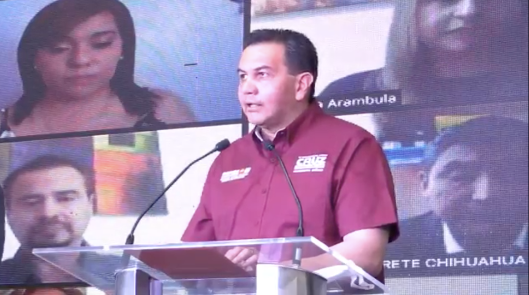 Ciudad Juárez.- Cruz Pérez Cuéllar Candidato a la Presidencia Municipal de Juárez por la Coalición Juntos Haremos Historia en Chihuahua presentó a su equipo de campaña, en un evento que se realizó vía zoom y a través de la plataforma Facebook, respetando las medidas de seguridad sanitaria