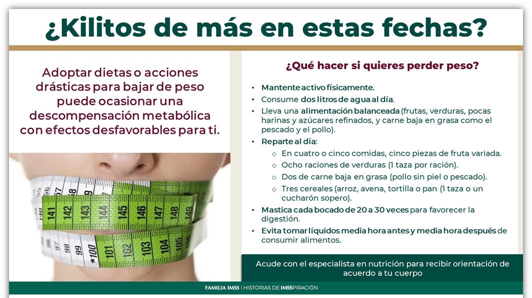 La Oficina de Representación Chihuahua del Instituto Mexicano del Seguro Social (IMSS) advirtió sobre el riesgo de ciertos regímenes alimenticios para bajar de peso rápidamente.