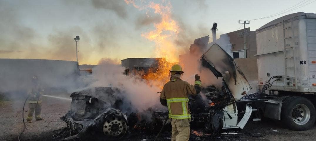 Cuauhtémoc, Chih.- La tarde de este lunes se registró el incendio de un tractocamión en la carretera Cuauhtémoc a La Junta, a la altura del poblado de Pedernales.