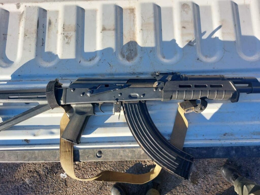 También se aseguró un arma de fuego calibre 7.62×39 de color negro con un cargador abastecido con 40 cartuchos útiles del mismo calibre, además de cinco cargadores para arma calibre 7.62×39 y 109 cartuchos útiles del mismo calibre.