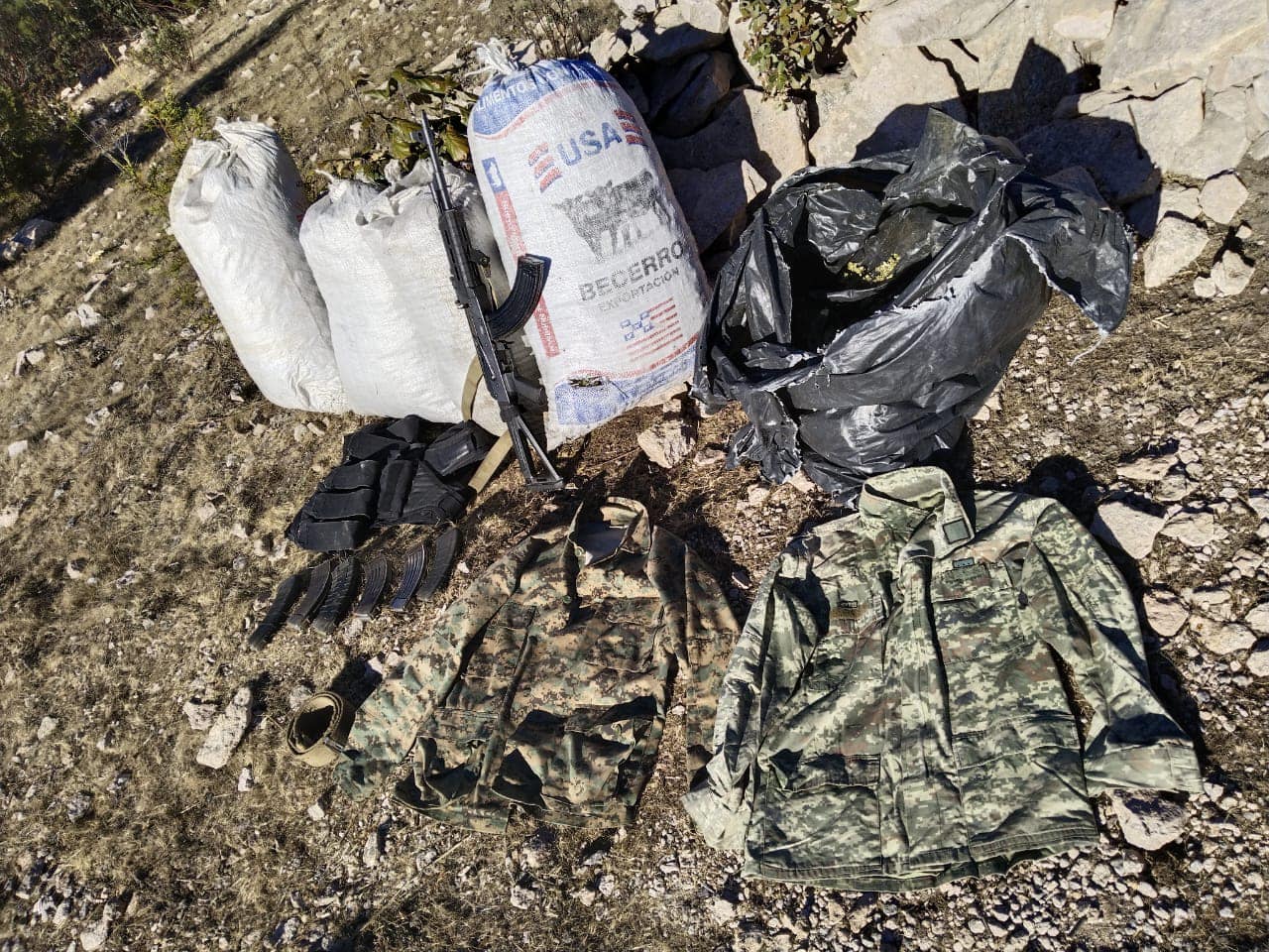 Elementos de la Coordinación de Zonas Rurales de la Secretaría de Seguridad Pública del Estado (SSPE) aseguraron un arma de fuego AK-47 y 38 kilogramos de marihuana en las inmediaciones de un campamento utilizado por miembros de la delincuencia organizada en el municipio de Urique.