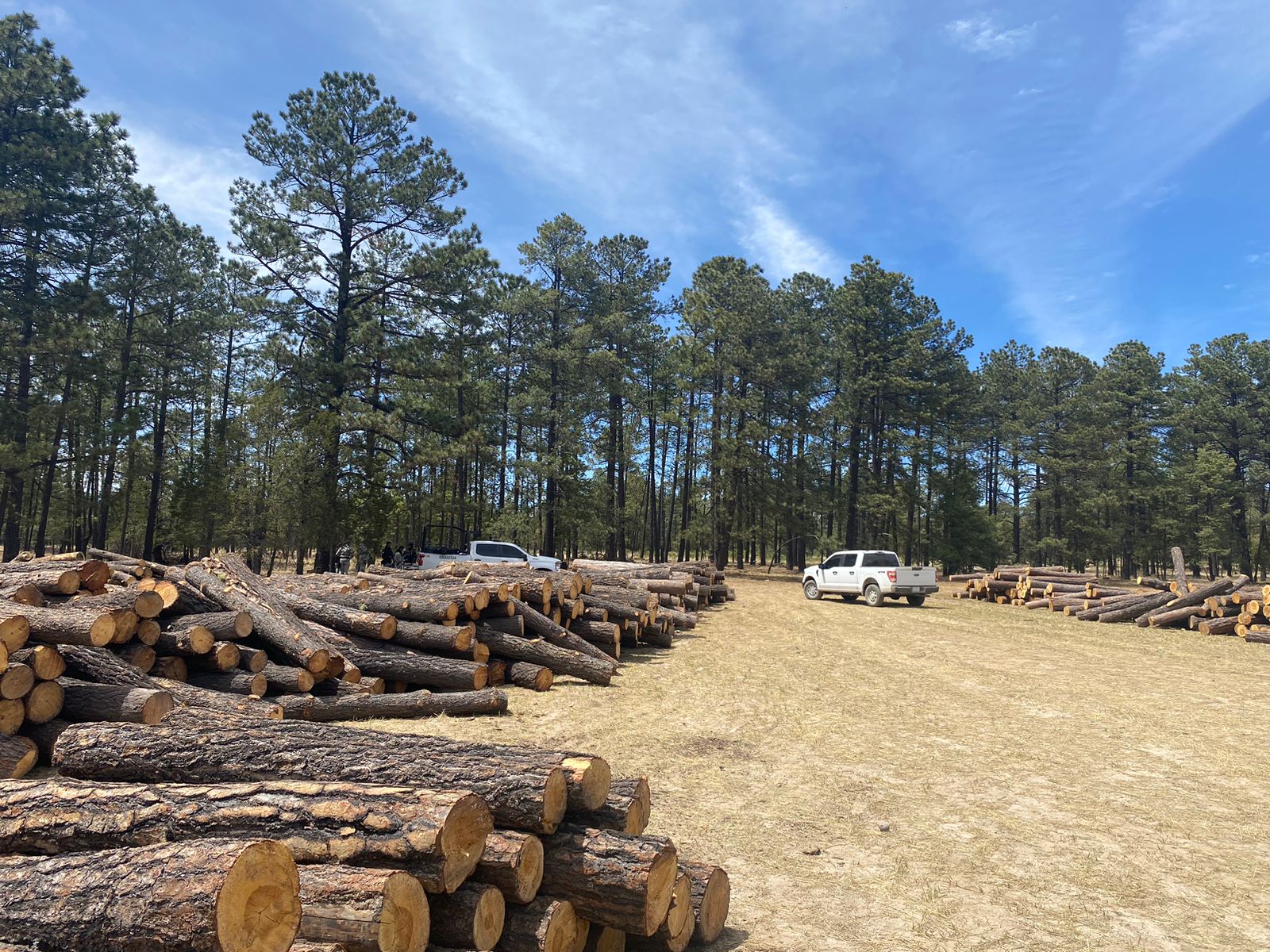 Elementos que conforman el Operativo Conjunto, realizaron en Guachochi un importante aseguramiento de madera en rollo, así como tractocamiones y una plataforma de transporte.