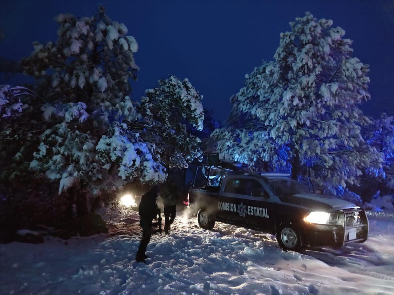 En el tramo que conduce del poblado de Creel, al complejo turístico Barrancas del Cobre, los efectivos ubicaron una camioneta que había salido de la carpeta asfáltica tras derrapar en el pavimento congelado.
